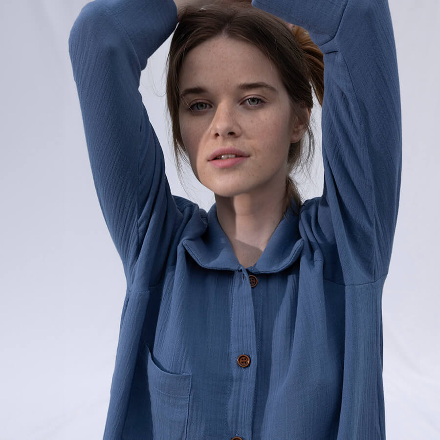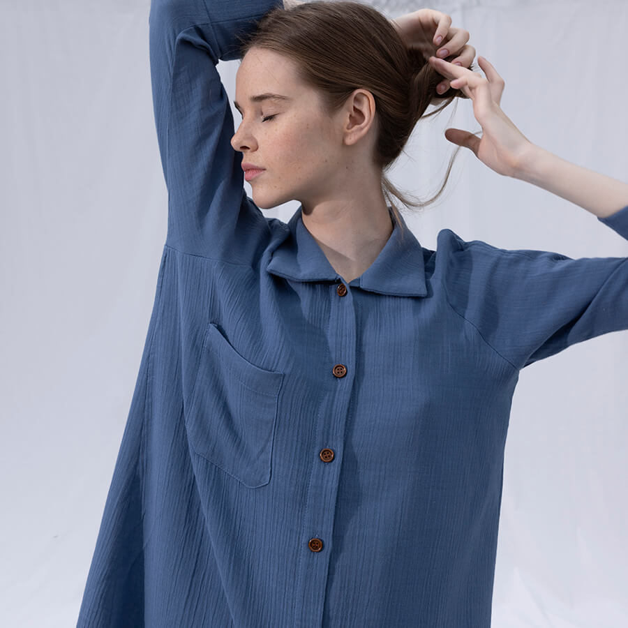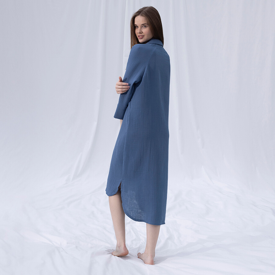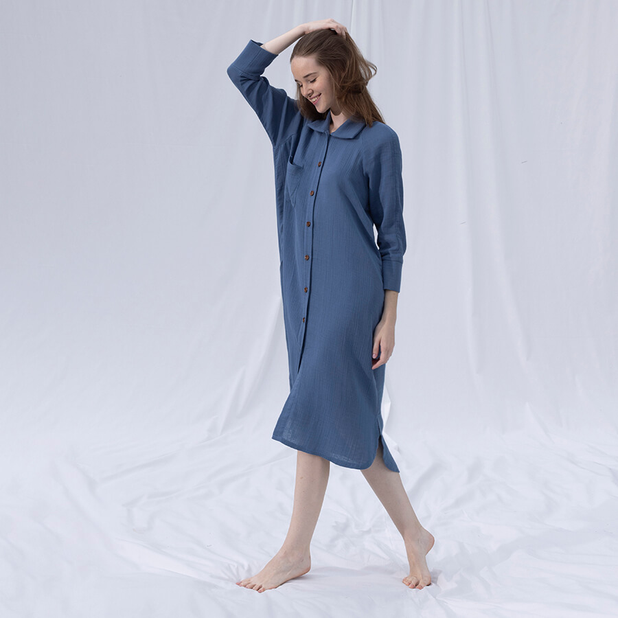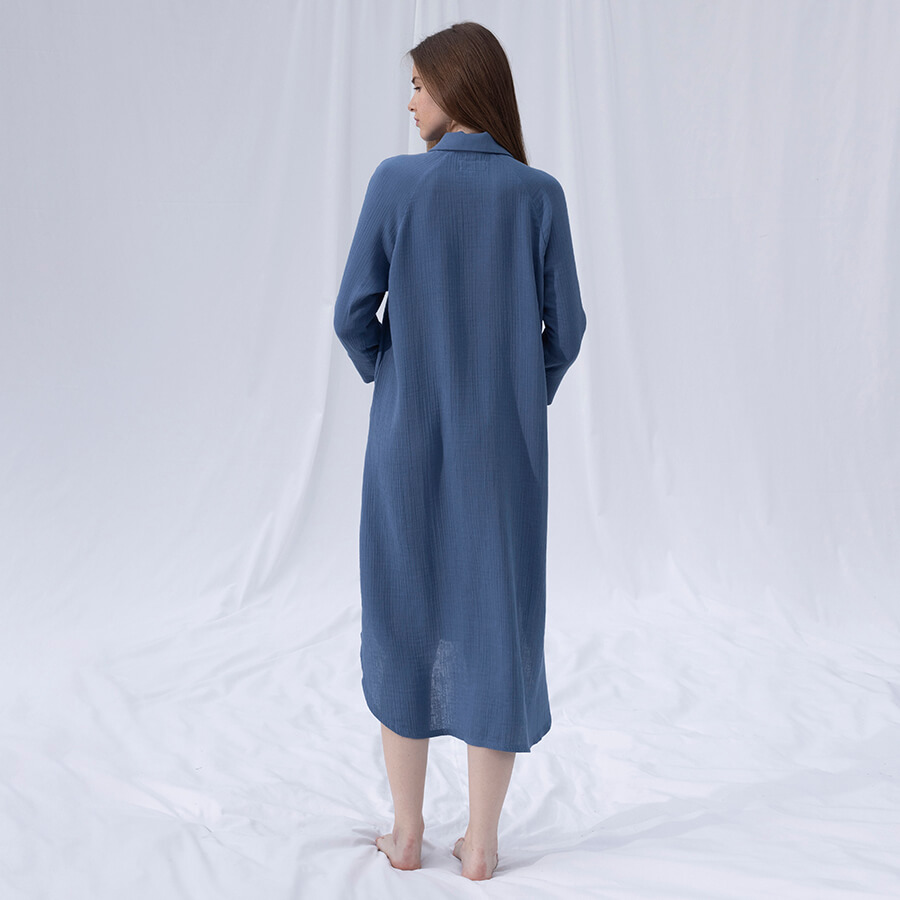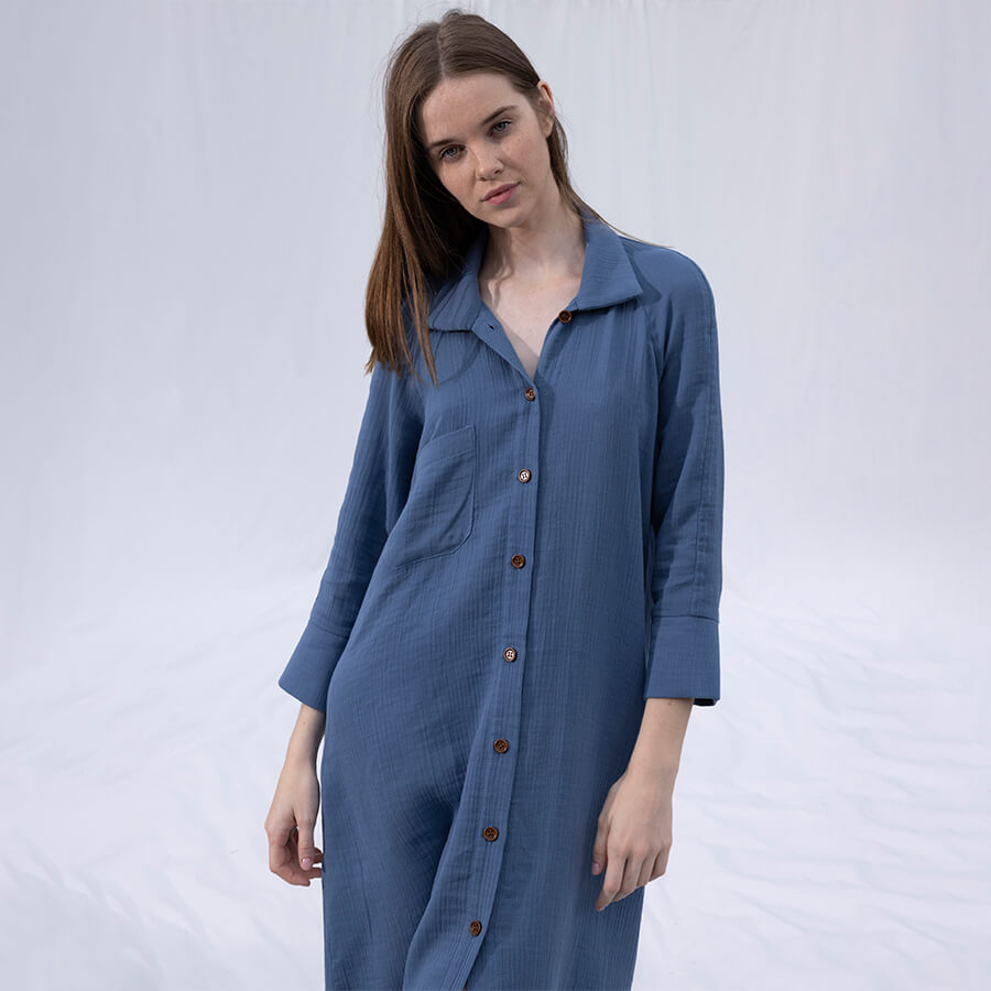 Penelope by Serli Keçoğlu Müslin Uzun Düğmeli Elbise İndigo L-XL