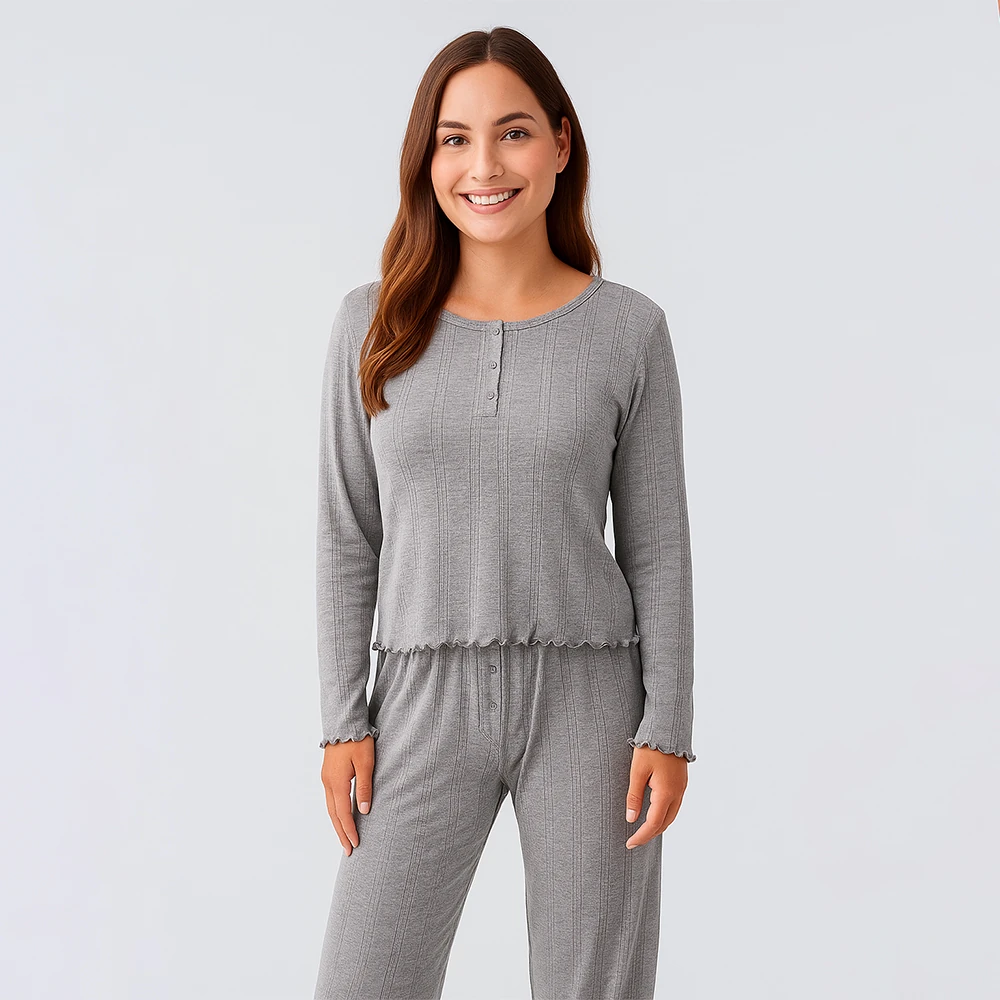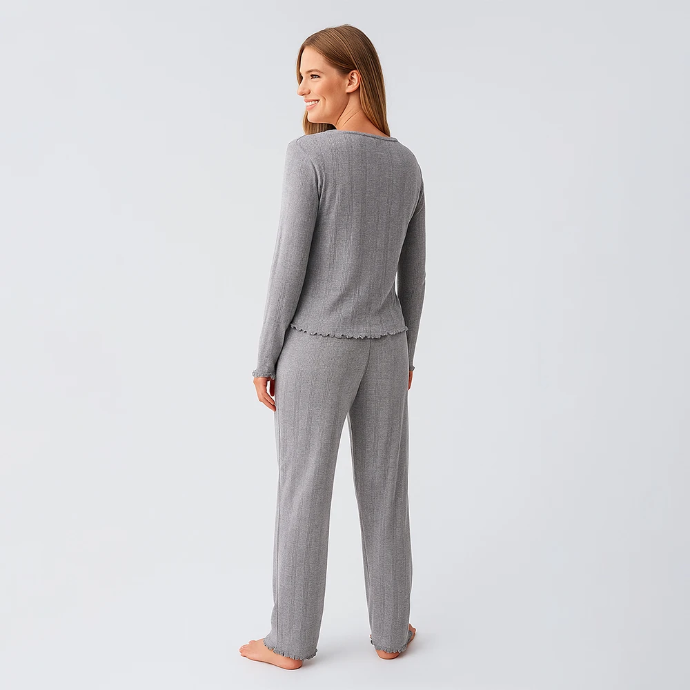 PENELOPE Perla %100 Pamuk Ajurlu Örme Pijama Takımı - Grı/L