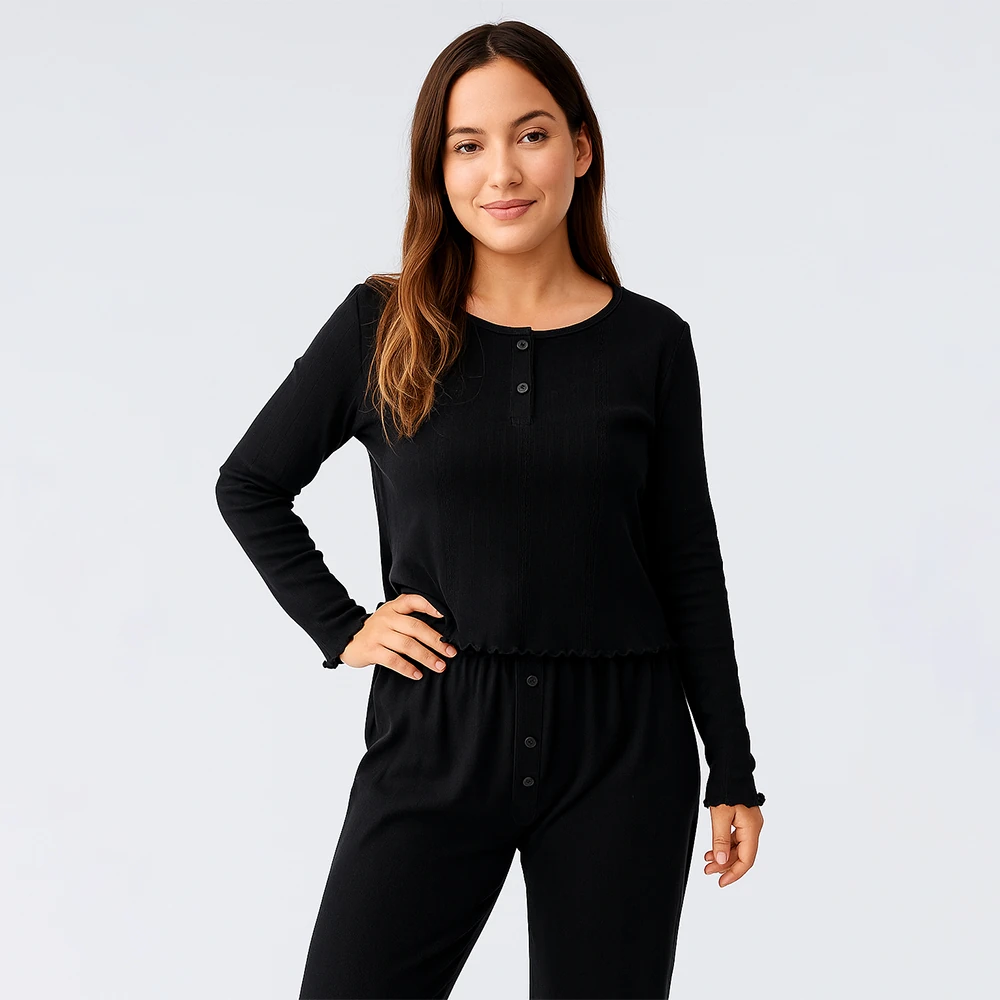 PENELOPE Perla %100 Pamuk Ajurlu Örme Pijama Takımı - Siyah/M
