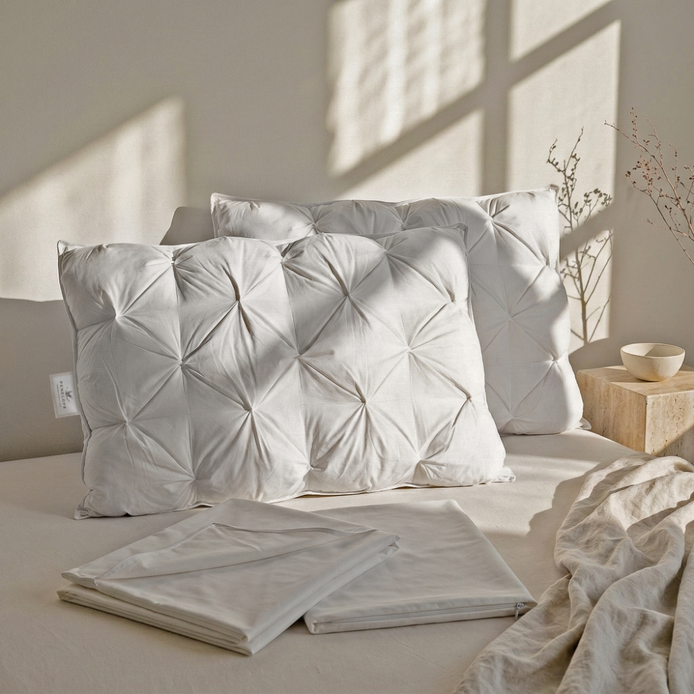 2 Adet Isı Dengeleyici %100 Kaz Tüyü El Yapımı Yastık 50x70 cm - Innovia Serisi1 Adet Tüy Geçirmez 2'li Yastık Alezi 50x70 cm - Nomite