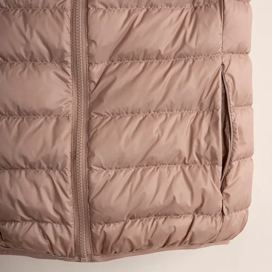 %100 polyamid kumaşlı, %90 gıdık ve %10 sırt tüyü dolgulu hafif kaz tüyü yelektir. Su itici dış yüzeye sahiptir ve taşıma torbasıyla birlikte sunulur.
