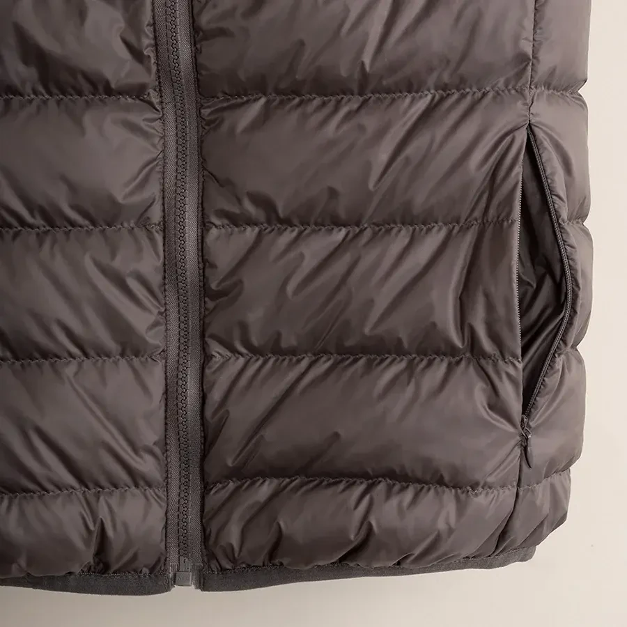 %100 polyamid kumaşlı, %90 gıdık ve %10 sırt tüyü dolgulu hafif kaz tüyü yelektir. Su itici dış yüzeye sahiptir ve taşıma torbasıyla birlikte sunulur.