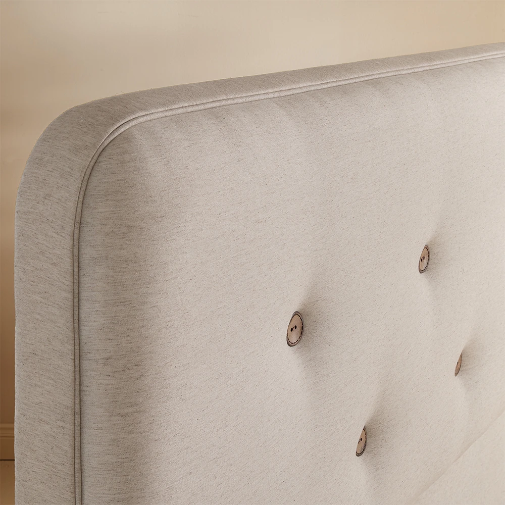 Ahşabın güçlü yapısı başlığa uzun ömürlü bir dayanıklılık kazandırırken, saf keten kumaşın doğal dokusu zarif bir görünüm ve cilde temas eden yumuşak bir his sunar.