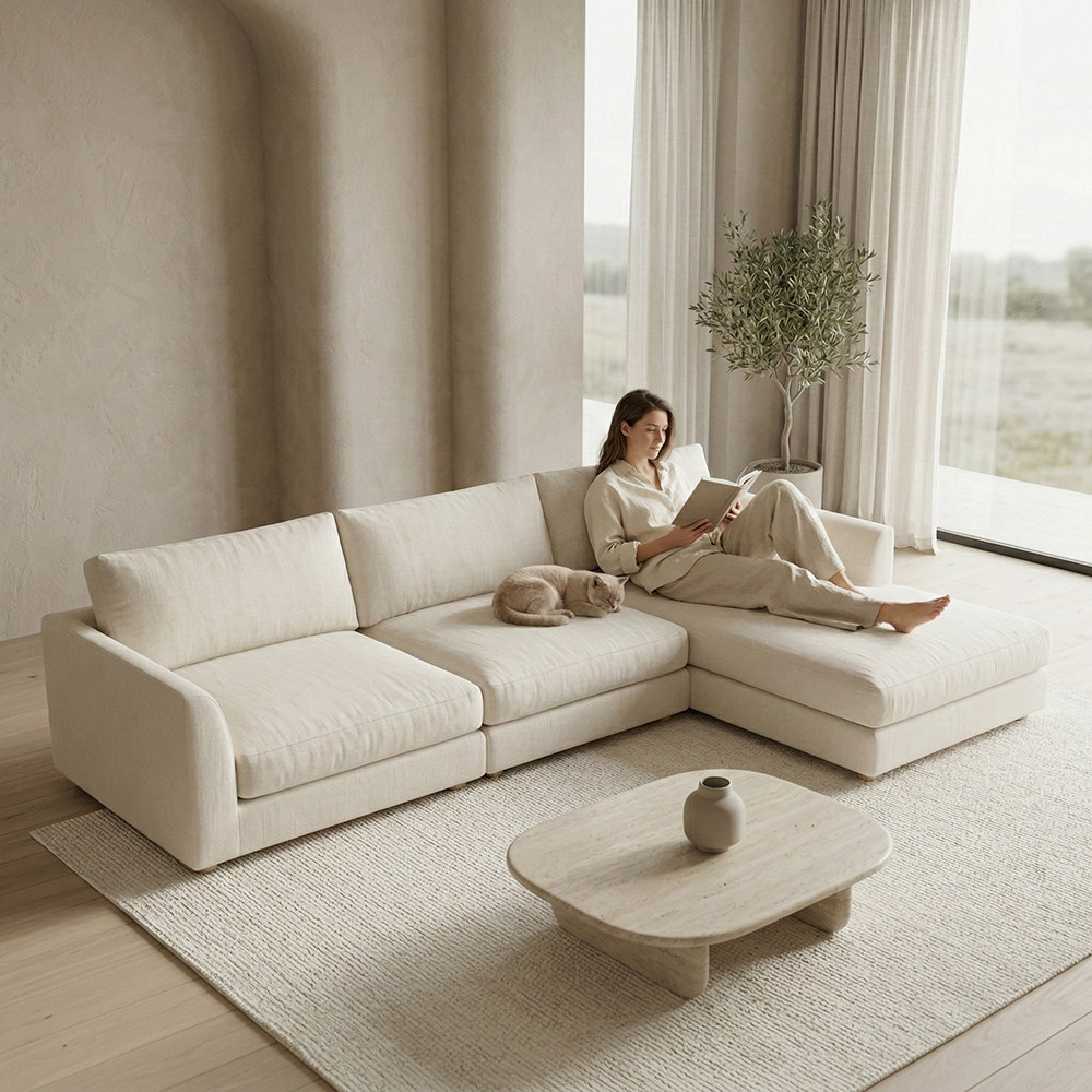 Sofa Plume, farklı yaşam alanlarına uyum sağlayan modüler yapısı ile öne çıkar. İster küçük bir oturma alanı ister geniş bir salon için olsun; modülleri bir araya getirerek istediğiniz ölçüde ve formda koltuk tasarımı yapabilirsiniz. Bu yapı sayesinde ürün; köşe koltuk, L koltuk, üçlü koltuk, berjerli kombin, geniş oturma grubu gibi farklı kullanım senaryolarına kolayca uyarlanabilir.