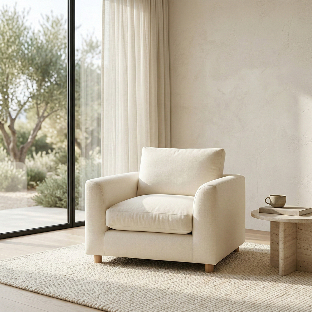 Sofa Plume Berjer 100 x 97 cm | Plainfry Kumaş - Beyaz Keten