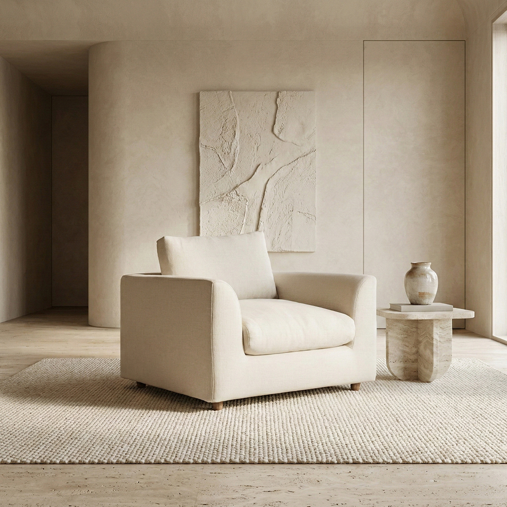 Sofa Plume Berjer 100 x 97 cm | Plainfry Kumaş - Beyaz Keten