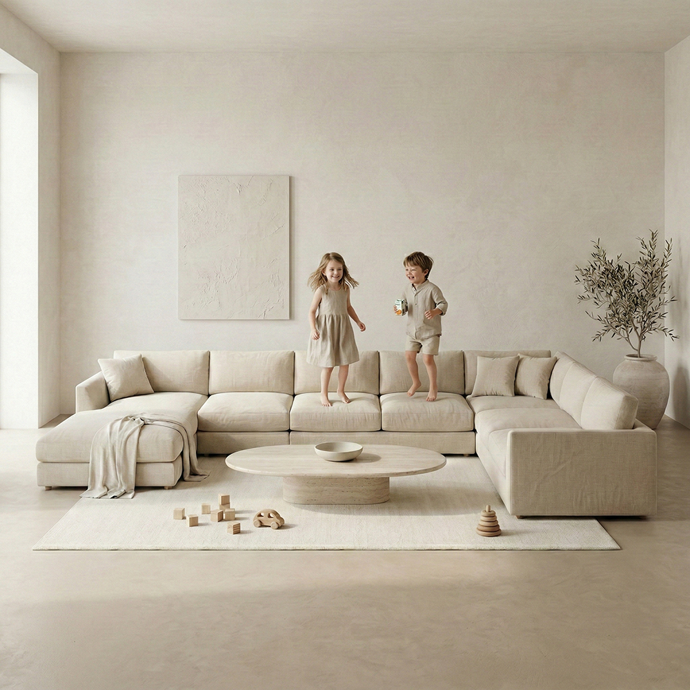 Sofa Plume, farklı yaşam alanlarına uyum sağlayan modüler yapısı ile öne çıkar. İster küçük bir oturma alanı ister geniş bir salon için olsun; modülleri bir araya getirerek istediğiniz ölçüde ve formda koltuk tasarımı yapabilirsiniz. Bu yapı sayesinde ürün; köşe koltuk, L koltuk, üçlü koltuk, berjerli kombin, geniş oturma grubu gibi farklı kullanım senaryolarına kolayca uyarlanabilir.