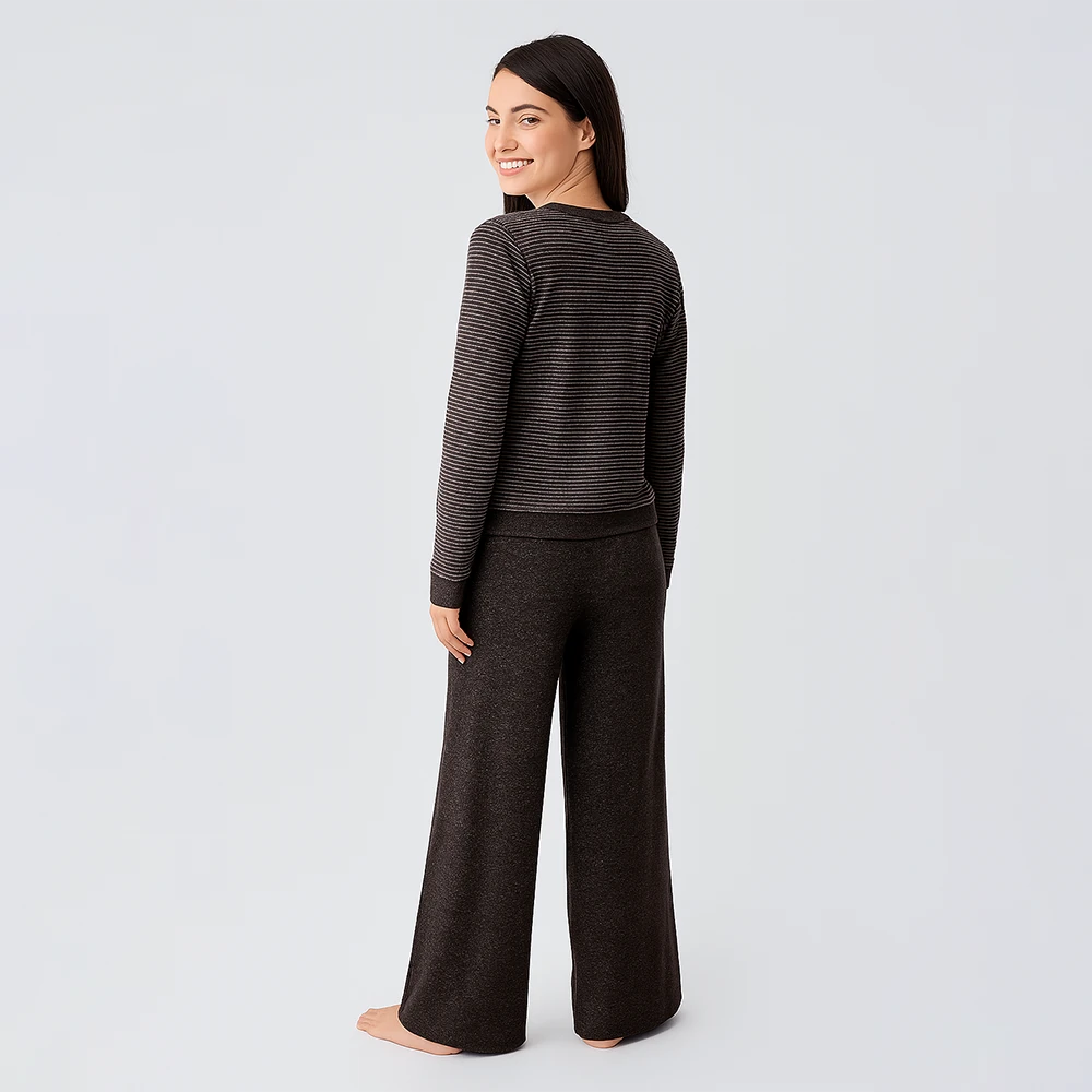 PENELOPE Softnest Uzun Kollu Yumuşak Dokulu Viskoz Pijama Takımı - Kahve/M
