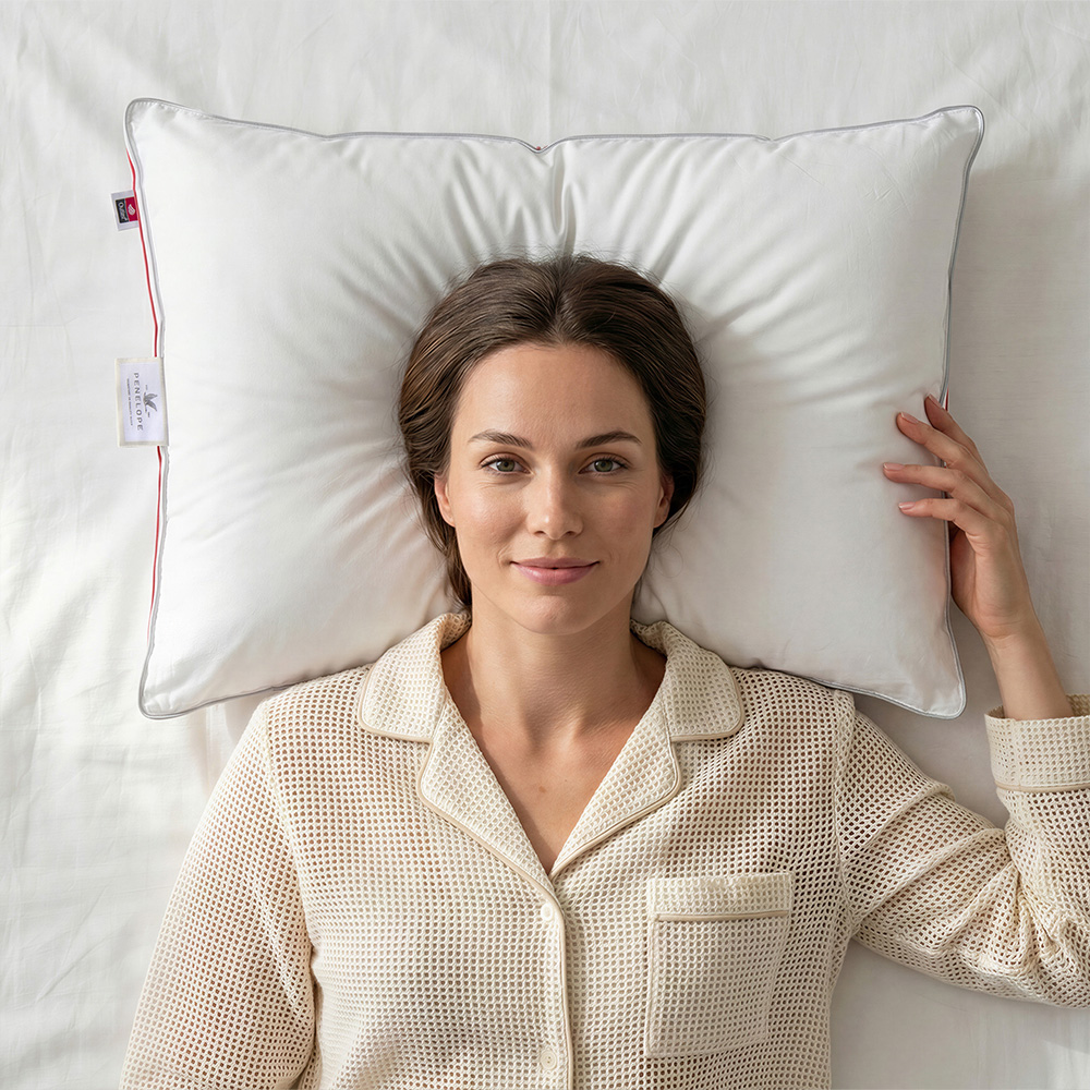 Uyku sırasında tercih ettiğiniz yatış şekline bağlı olarak doğru yastık seçimi sağlığınızı ve kaliteli uyku deneyimini etkiler. Penelope'nin Thermy kaz tüyü yastığı, sırt üstü yatmayı tercih edenler için ideal bir seçimdir. Ayrıca, özel Outlast kumaşı sayesinde vücut ısınızın dengelenmesine yardımcı olur. Bu özellikleriyle Thermy kaz tüyü yastık, uyku sırasında mükemmel bir konfor sunar.