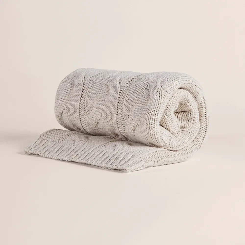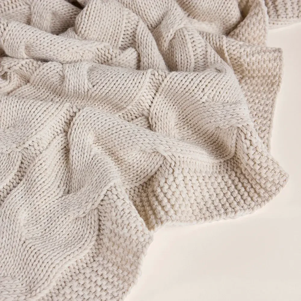 Triko Tv Battaniyesi Throw Bej-Krem Koltuk Şalı 130x170 cm - Luma Serisi