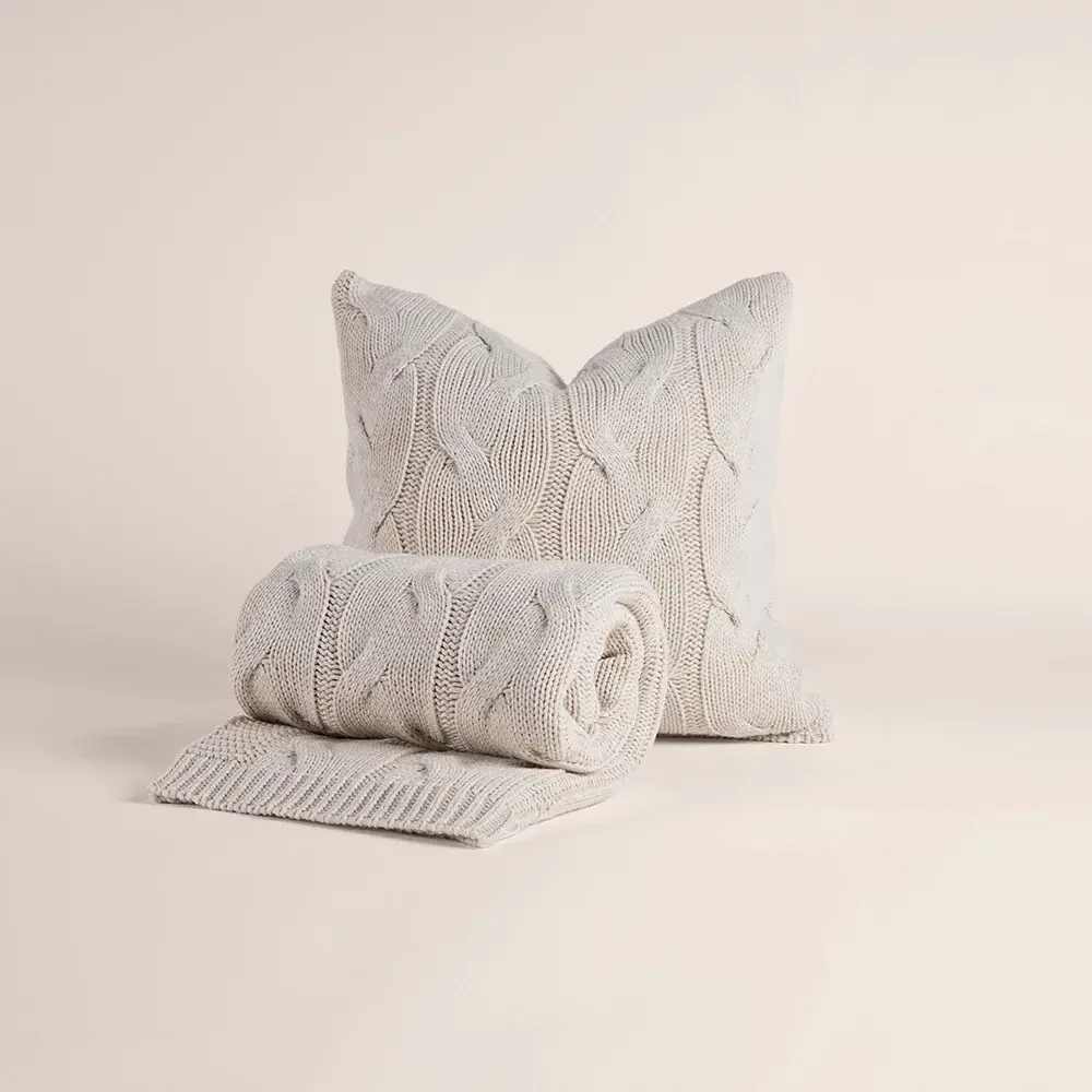 Triko Tv Battaniyesi Throw Füme-Krem Koltuk Şalı 200x220 cm - Luma Serisi