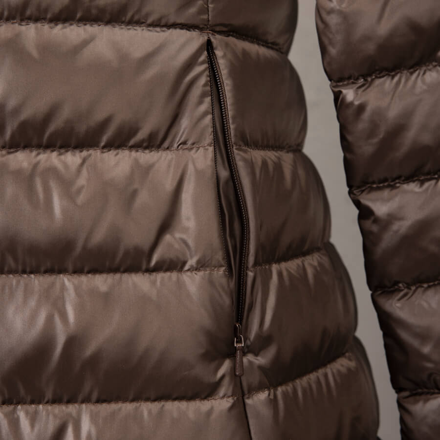 Vera kadın kaz tüyü mont modeli, taşınmasını kolaylaştırmak için, kendi katlanabilir kesesi ile gelir.