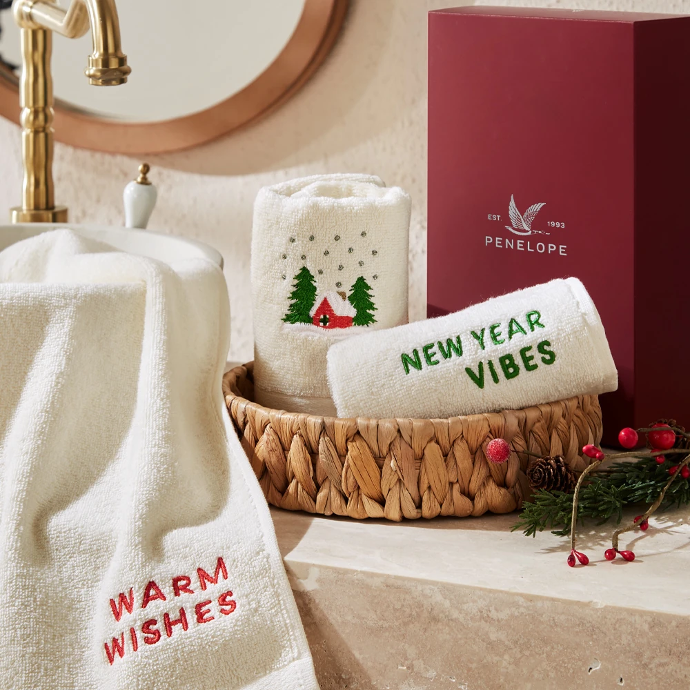 Yılbaşı Temalı %100 Pamuk 3'lü Kutulu Havlu Seti - Wish Box